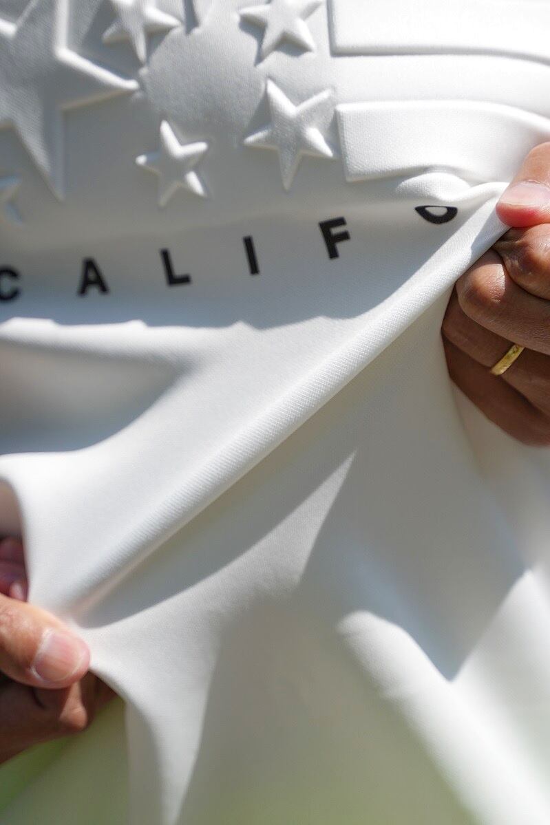 胸元の星条旗エンボスがモノトーンなのに存在感が抜群。