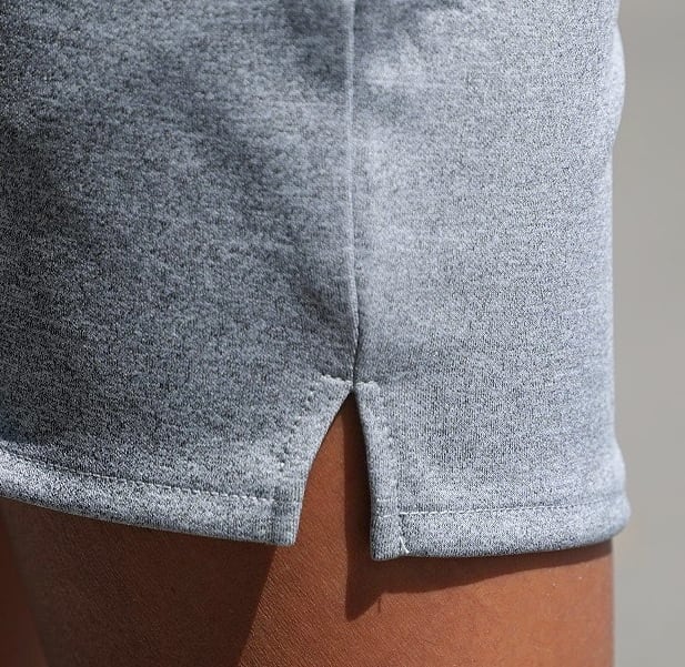 膝上丈ですっきりとしたシルエットに、裾はスリット入りで動きやすさにもこだわりました。