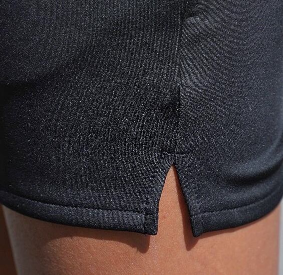 膝上丈ですっきりとしたシルエットに、裾はスリット入りで動きやすさにもこだわりました。