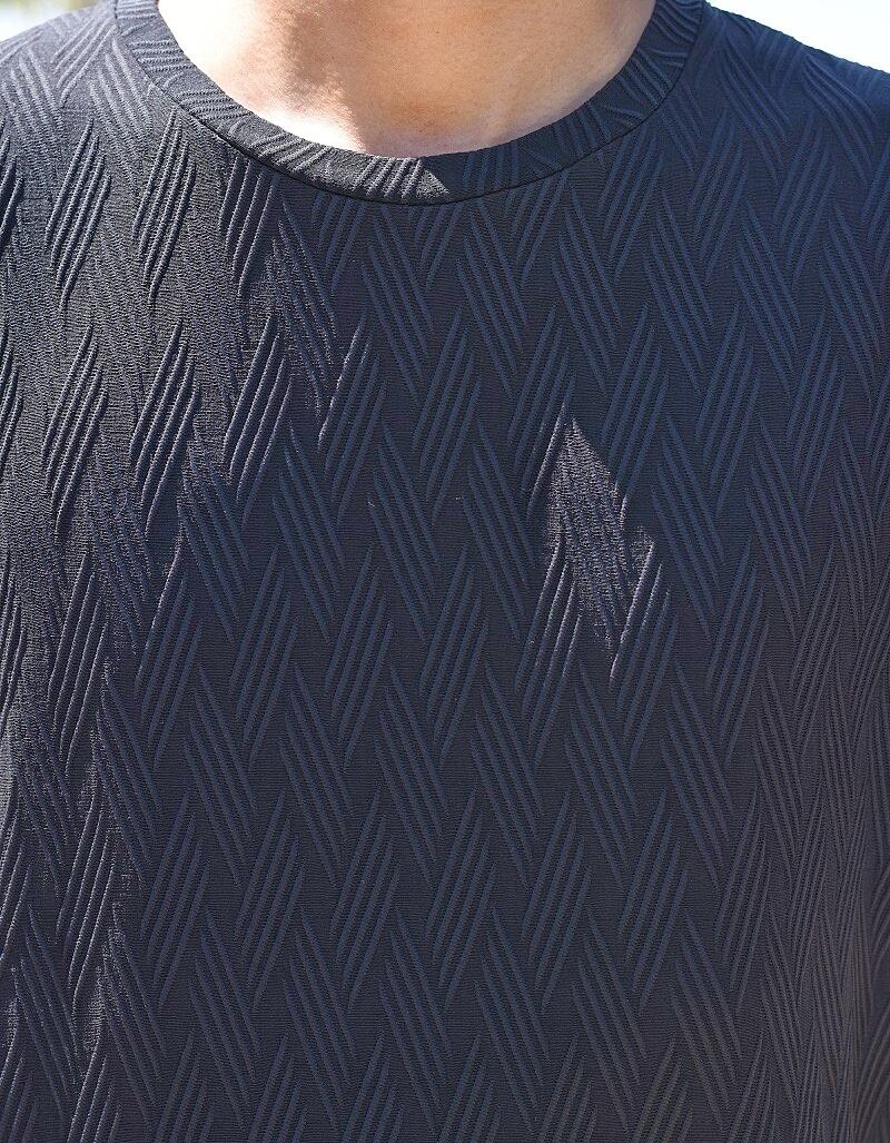 ジャガード加工ならではの高級感艶感が増しワンランクアップするTシャツ。