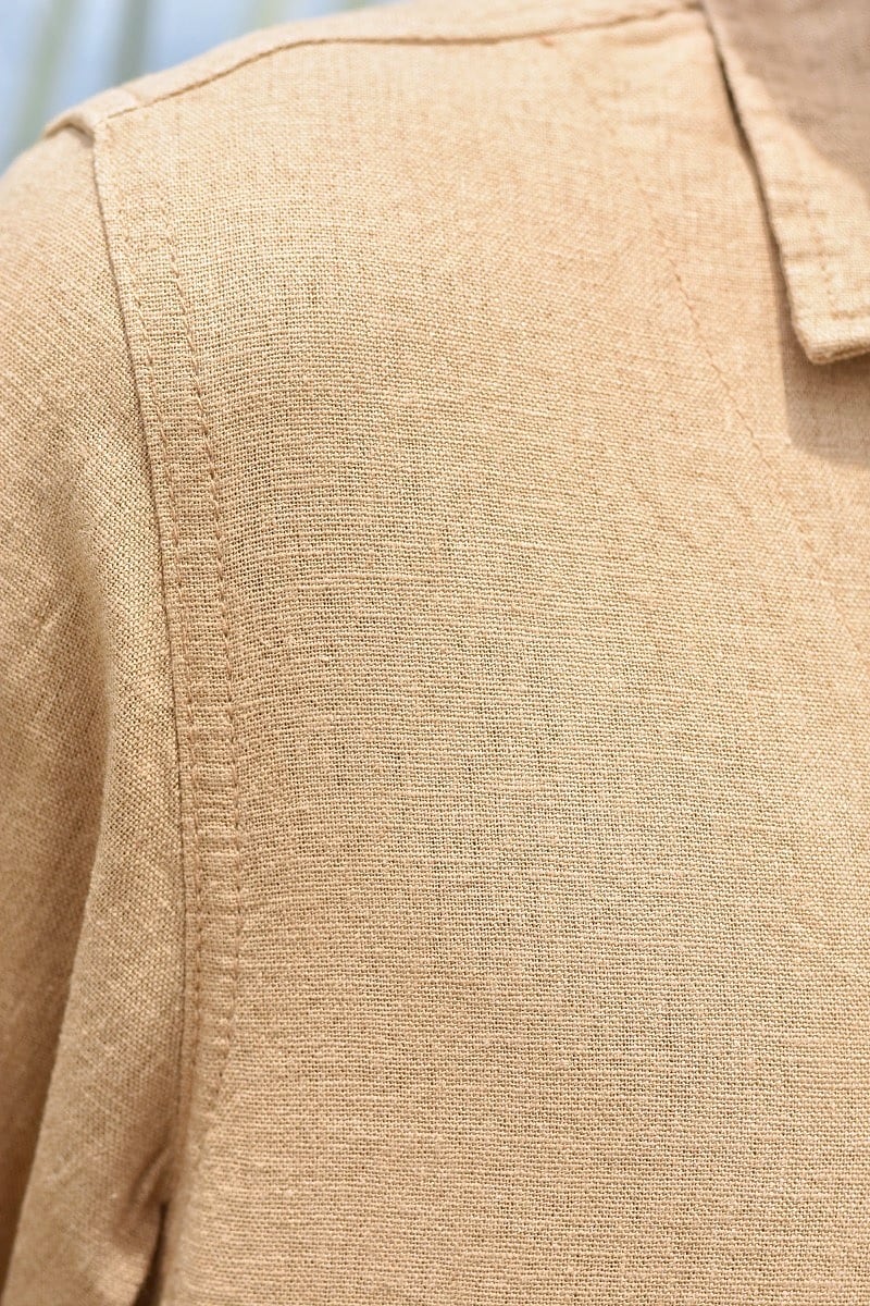 清涼感と通気性に優れたフレンチリネン生地を使用した7分袖カプリシャツ。