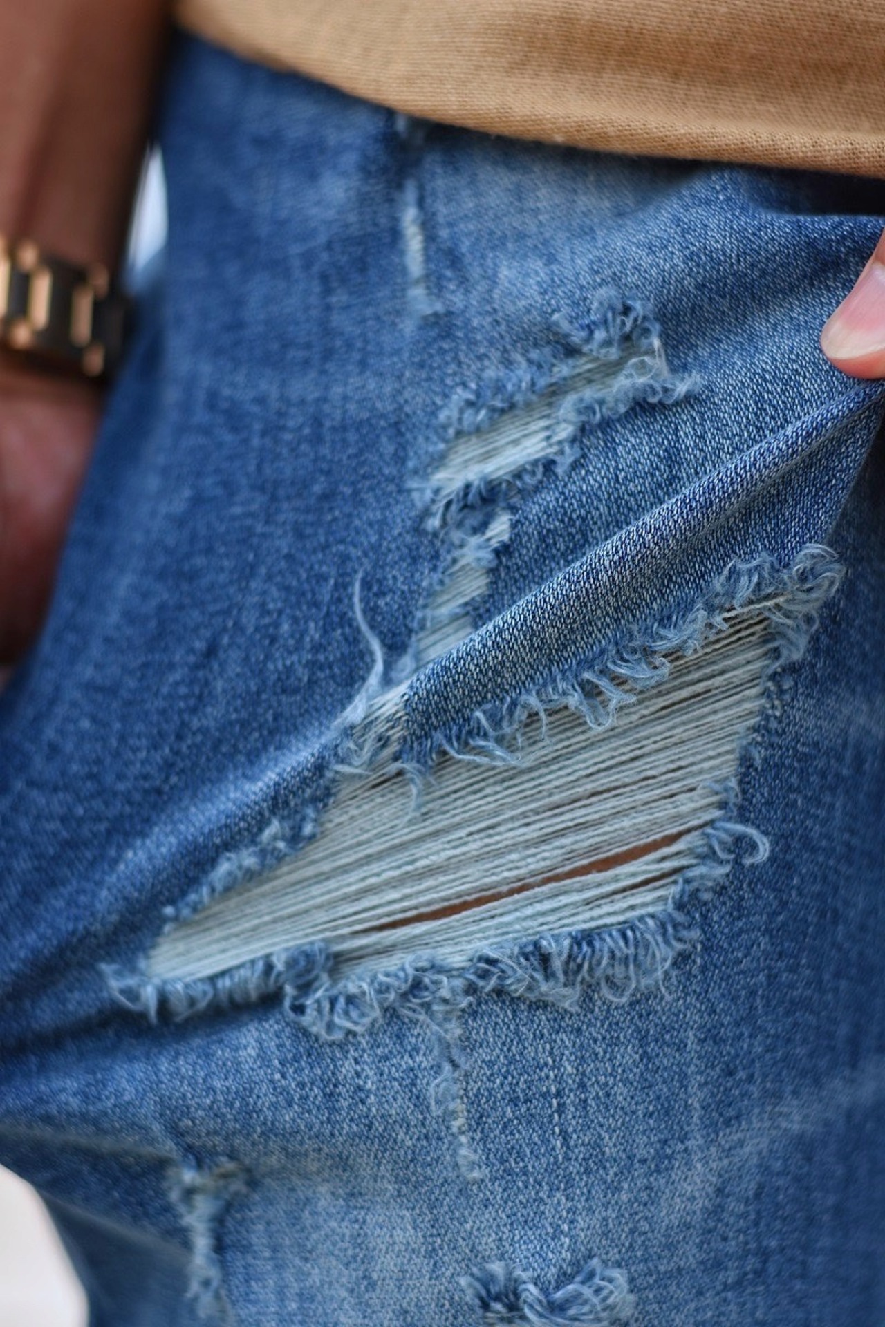 自然な色落ちとダメージ加工がヴィンテージ感漂うこだわりが感じられる逸品。