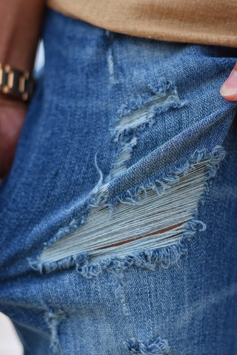 ☆ インディゴ クラッシュ ダメージ デニム スキニー パンツ メンズ ジーンズ タイト フィット 細身 ストレッチ 穴あき 美脚 大人 カジュアル 海外 ファッション