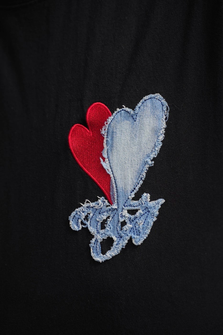 [ ハート デニム 刺繍 ロゴ 長袖 Tシャツ ]
