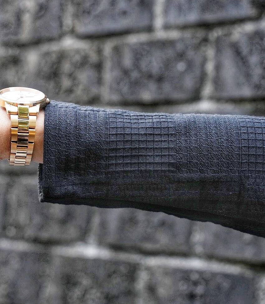 凸凹感のある、立体的なグレンチェック柄の生地を使用。