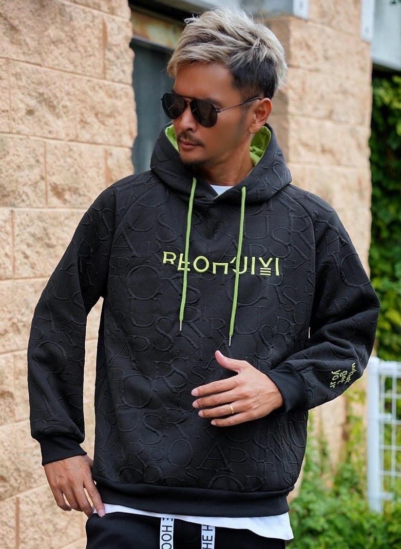 [ 裏起毛 エンボス ジャガード ロゴ 刺繍 パーカー ]