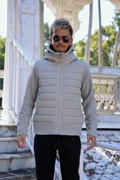 2025 冬 新作 ☆ ニット ナイロン コンビ ダウン タッチ ブルゾン メンズ ジャケット 中綿 暖かい パーカー フード スポーツ 上品 大人 カジュアル 海外 ファッション