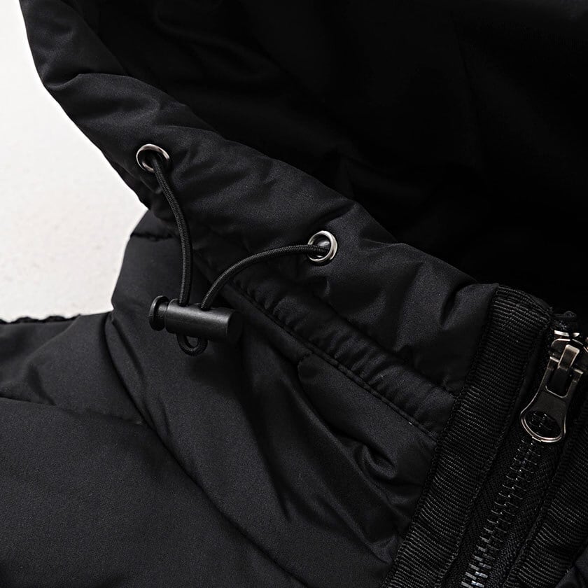 ボリュームのあるフードはドローコードでサイズ調節可能。