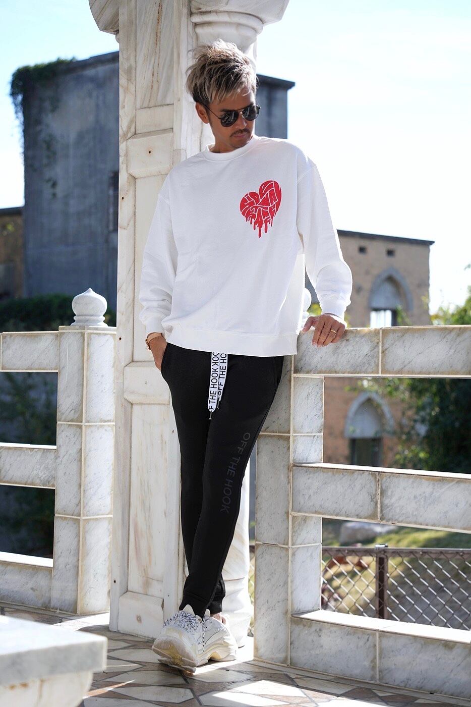 グラフィックに落とし込んだハートロゴが目を惹くトレーナー。