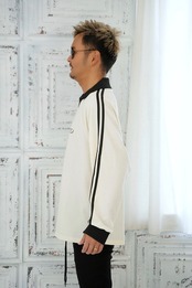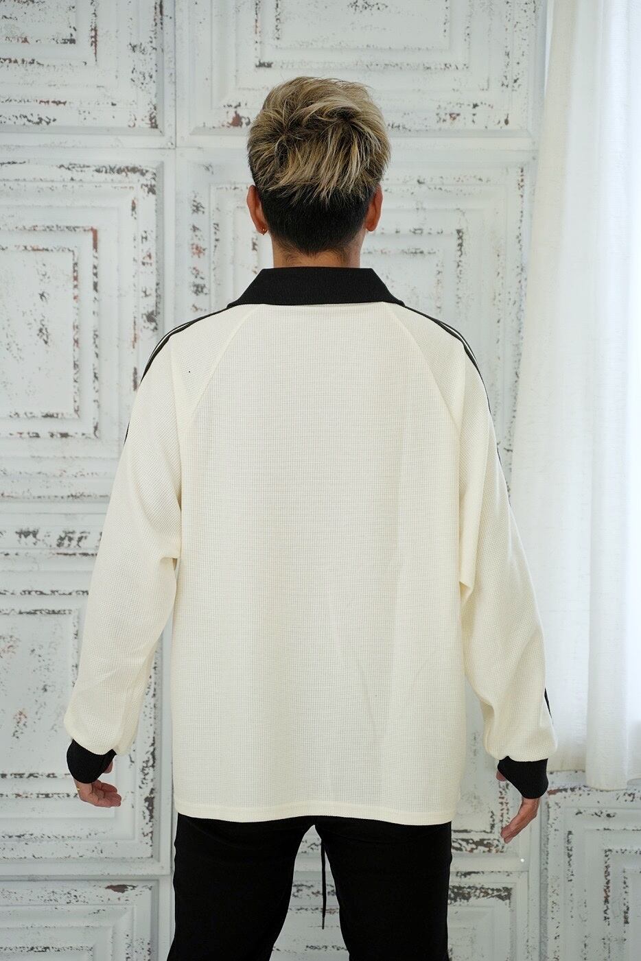 [ ダブル ライン スリーブ オーバーサイズ ワッフル ポロシャツ ]