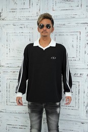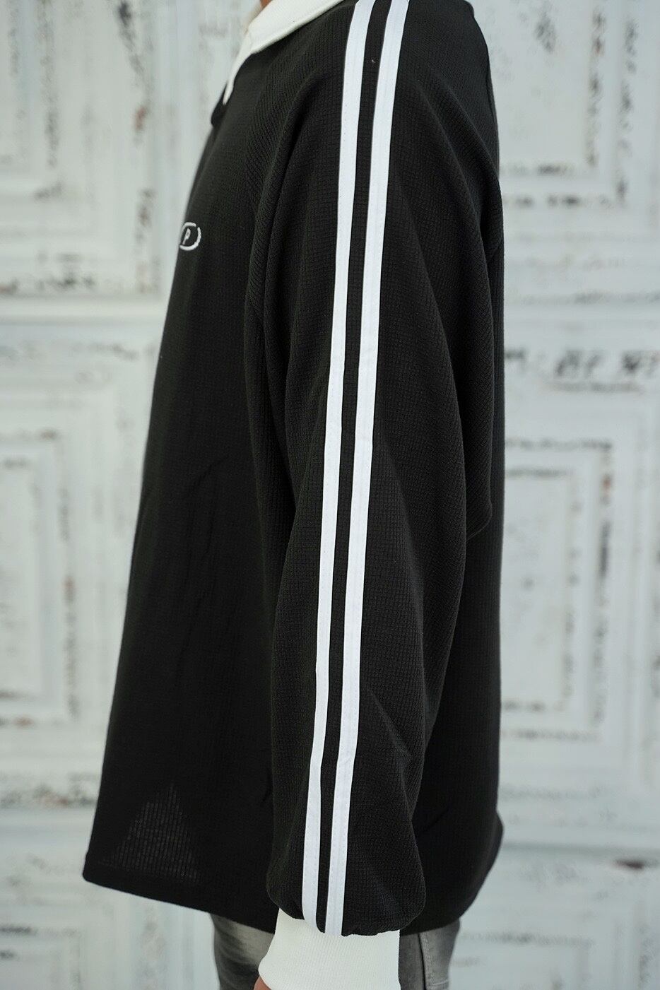 [ ダブル ライン スリーブ オーバーサイズ ワッフル ポロシャツ ]