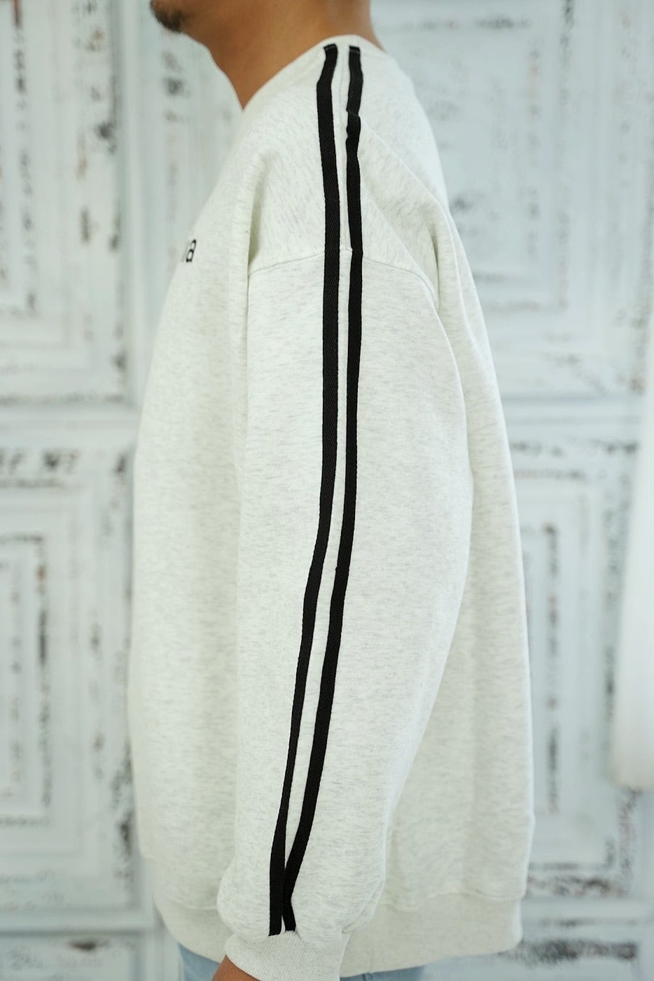 袖のラインがスポーティーなスウェットトレーナー。